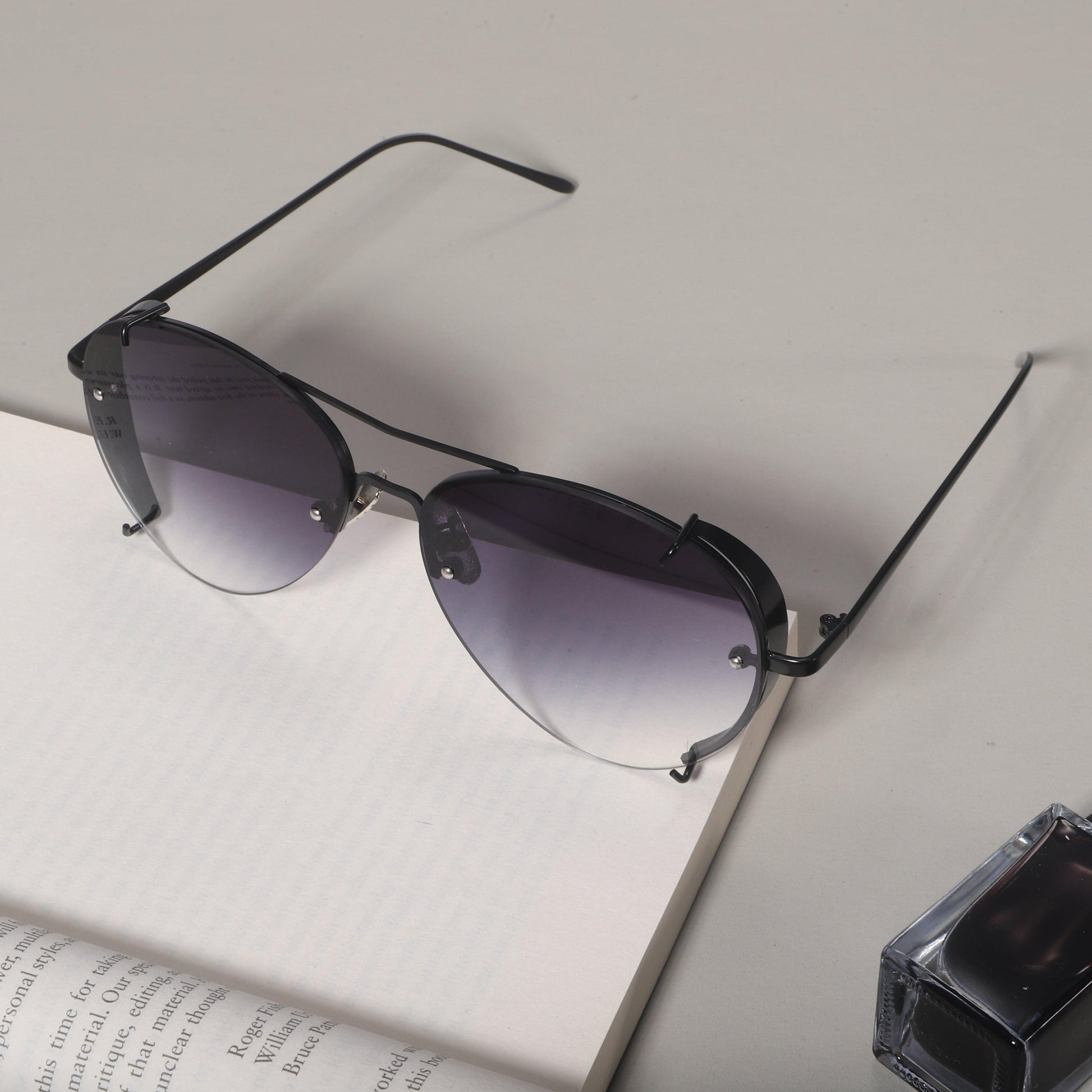 sunglasses adopt classic aviator frames and transparent anti-UV lenses, combined with metal temples. They are lightweight and durable