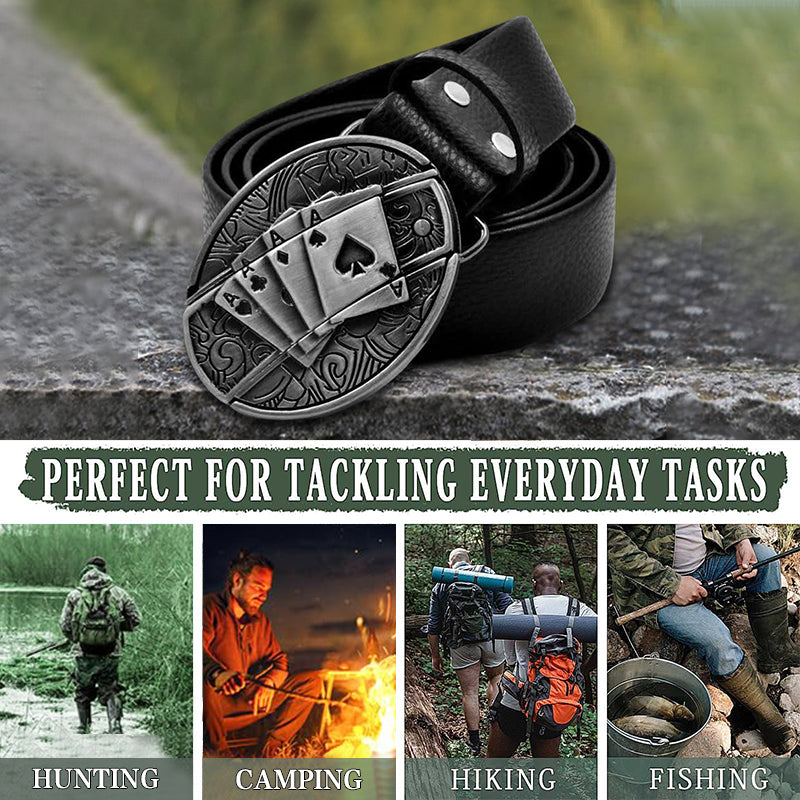 Men's Poker 4 Ace Leather Belt With Folding Knife